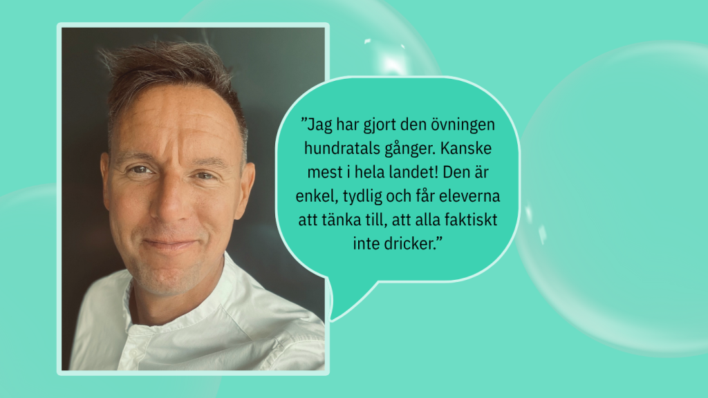”Jag har gjort den övningen hundratals gånger. Kanske mest i hela landet! Den är enkel, tydlig och får eleverna att tänka till, att alla faktiskt inte dricker.”